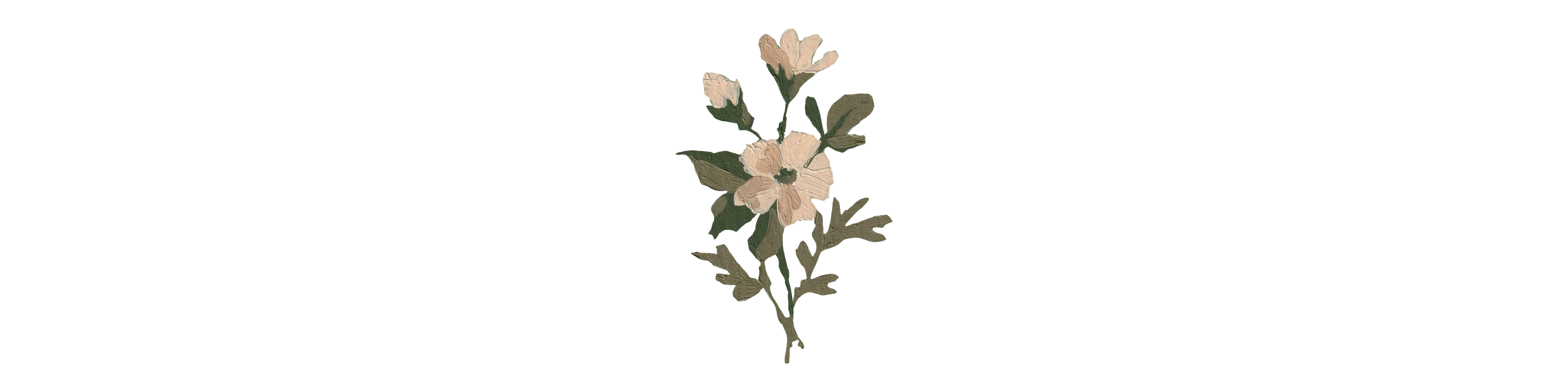 Floral painting on a blue background with pink flowers and green leaves.